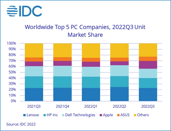 Für den insgesamt rückläufigen Branchentrend machen die Marktforscher insbesondere eine nachlassende Kundennachfrage sowie anhaltende Lieferkettenprobleme verantwortlich. Sie betonen aber, dass die Nachfrage nach PCs und Laptops trotz des jüngsten Rückgangs immer noch höher ist als vor der Corona-Pandemie.