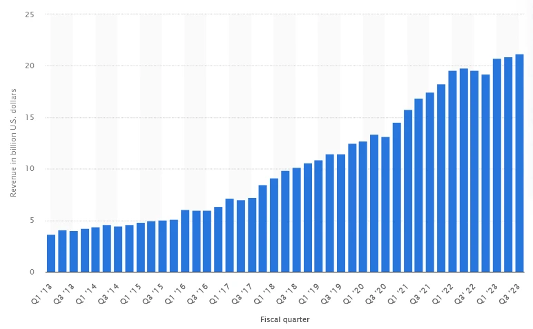 Das „Services“-Geschäft erlöste im Q3/23 (bis Ende Juni) einen Umsatz von 21,2 Milliarden Dollar, was einer Verbesserung von 8,2 Prozent gegenüber dem Vorjahresquartal und rund 26 Prozent der Gesamtumsätze entspricht. Die aus App-Store-Einnahmen und Abo-Erlösen bestehenden „Services“-Umsätze sind damit erneut schneller gewachsen als die „Product“-Umsätze, welche durch den Verkauf von iPhone, Mac und Co erzielt werden.
