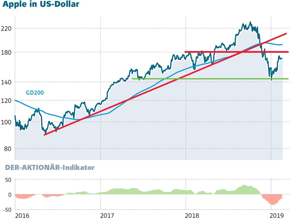 Die Bewertung der Apple-Aktie mit einem 2019er-KGV von 14 bis 15 lässt weiterhin Spielraum für Kursgewinne. Spannend dürfte es werden, wie die Analysten neue Serviceangebote in ihre Prognosen für die nächsten Jahre einarbeiten werden. Dank hoher Bruttomargen von 60 Prozent sollte das Ergebnis nachhaltig positiv beeinflusst werden. Charttechnisch betrachtet gönnt sich Apple aktuell eine Verschnaufpause auf hohem Niveau. Mit frischen Impulsen könnte bald ein Anlauf Richtung 180 Dollar folgen. Der Wert bleibt nach AKTIONÄR-Einschätzung weiterhin ein Kauf.
