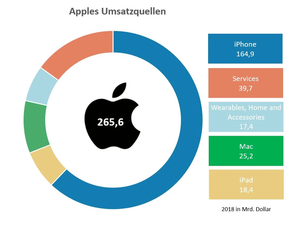 2018 generierte Apple 15 Prozent oder knapp 40 Milliarden Dollar der Gesamterlöse im Servicegeschäft. Bis 2021 soll sich das Umsatzvolumen auf knapp 70 Milliarden Dollar fast verdoppeln. Die nun angekündigte Initiative bei der App-Entwicklung ist nur eine von vielen, die für frische Wachstumsimpulse sorgen sollen. Eine Reduzierung der Abhänigkeit vom iPhone ist vorprogrammiert und auch notwendig, denn nach wie vor ist der Löwenanteil der Umsätze auf das Kult-Smartphone zurückzuführen.