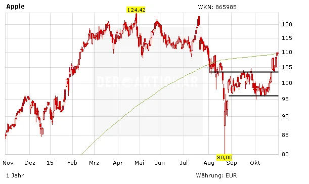 Sollte der Boom in China weitergehen, dürfte das für die Apple-Aktie weitere Impulse liefern. Aktuell generiert der chinesische Markt Erlöse von 58 Milliarden Dollar. Werden die USA als größter Markt überholt, könnten die Umsätze in der Volksrepublik auf fast 100 Milliarden Dollar steigen (Gesamtumsatz: 233 Milliarden Dollar). Erstmals seit mehr als zwei Monaten hat die Aktie am Donnerstag die wichtige Marke bei 120 Dollar überschritten. Auch die 200-Tage-Linie wurde wieder erreicht. Anleger nutzen das Momentum und steigen ein - jedoch nicht ohne Stopp. Auch DER AKTIONÄR hat im 10-Prozent-plus-Depot erste Positionen aufgebaut.