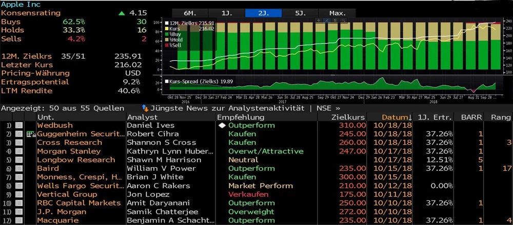 Die kurzfristig sicherlich größerer Relevanz für den Aktienkurs hat das neue Hammer-Kursziel von Wedbush für die Apple-Aktie. Die Investmentbank vergibt aktuell das höchste Kursziel für Apple an der Wall Street. Wedbush geht davon aus, dass Apple mit starkenVerkaufszahlen aufwarten wird, während gleichzeitig die Verkaufspreise steigen. Ensprechende ambitioniert startet Wedbush seine Coverage mit einem Ziel von 310 US-Dollar, was einem Potenzial von rund 44 Prozent gegenüber dem aktuellen Kurs entspricht. Bezogen auf den Börsenwert impliziert das eine unfassbare Bewertung von 1,5 Billionen Dollar.