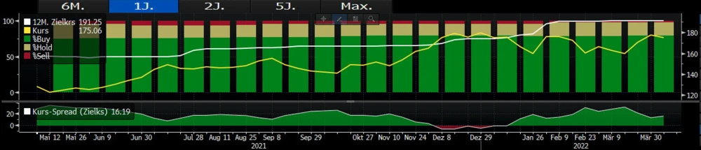 Das erste Quartal ist vorbei und die Berichtssaison rückt näher. Auch für Apple ist es am 28. April wieder soweit. Die Analysten versuchen nun ein von geopolitischen Krisen, steigender Inflation und noch immer angespannten Lieferketten geprägtes Quartal einzuordnen. Dabei warnten zuletzt einige Experten vor negativen Auswirkungen auf die iPhone-Verkäufe. An den Kurszielen zeigten sich diese Sorgen jedoch nicht.