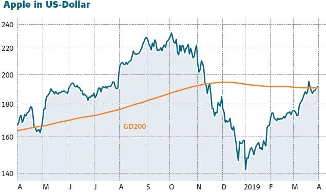 Die Aktie von Apple hat sich zuletzt enorm stark präsentiert. Kurzzeitig konnte das Papier bereits über die 200-Tage-Linie hinausblicken. Anschließend ist die Aktie aber wieder unter den wichtigen Widerstand zurückgerutscht. Nun könnte durchaus der nächste Angriff folgen. Der nachhaltige Bruch dieser Hürde würde ein neues Kaufsignal für die Apple-Aktie bedeuten. Anleger, die seit der Kaufempfehlung des AKTIONÄR bei der Aktie mit an Bord sind, können sich mittlerweile über einen Kursgewinn von mehr als 78 Prozent freuen. In jedem Fall Gewinne laufen lassen!