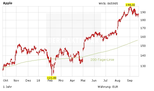 Anleger beobachten die Entwicklung des Apple-Ökosystems mit Freude. Sei es der abgeschlossene Zukauf von Shazam oder spezielle Apple-Features in den Apps der großen Anbieter von Firmensoftware – eine Ausweitung von iOS und Apple-Services dürfte langfristig helfen die solide Umsatzentwicklung beizubehalten. Hier heißt es: Dabeibleiben!