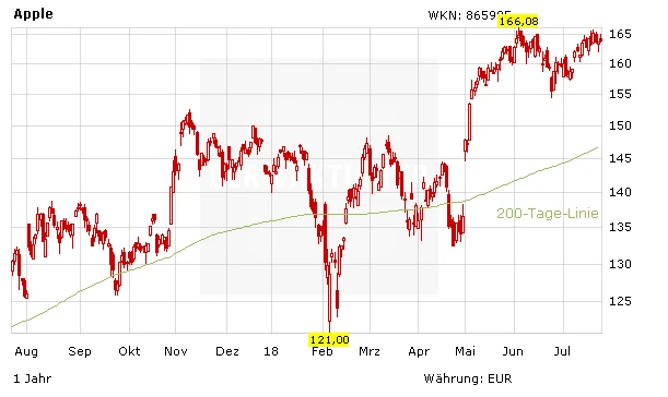 Zusammenfassend ist eine Schwäche des Smartphone-Marktes zu beobachten – das bedeutet jedoch noch lange kein Schrumpfen des Marktes. Das iPhone bleibt jedenfalls eine klare Wachstumsstory. Dies dürfte auch im dritten Quartal bestätigt werden. Das wiederum bedeutet weiteres Kurspotenzial. Anleger bleiben dabei.