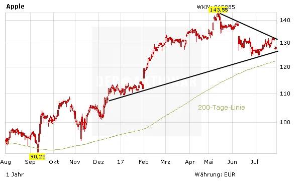 Investierte Anleger sollten vor den Quartalszahlen Ruhe bewahren und an den Papieren festhalten. Denn technisch passt das langfristige Chartbild. Neueinsteiger und Trader warten mögliche Impulse durch den Einblick in die Apple-Bilanz ab.