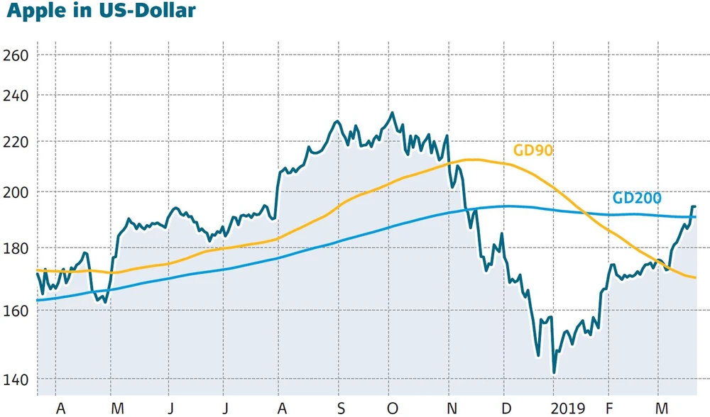 Im starken Wachstum des Services-Geschäfts sieht DER AKTIONÄR einen entscheidenden Treiber für die Apple-Aktie. Neuigkeiten im Bereich Finanzdienstleistung geben der Aktie einen deutlichen Schub. Mit dem höchsten Kursansteig intraday seit Anfang Februar durchbricht Apple die 200-Tage-Linie. Anleger lassen die Gewinne laufen.