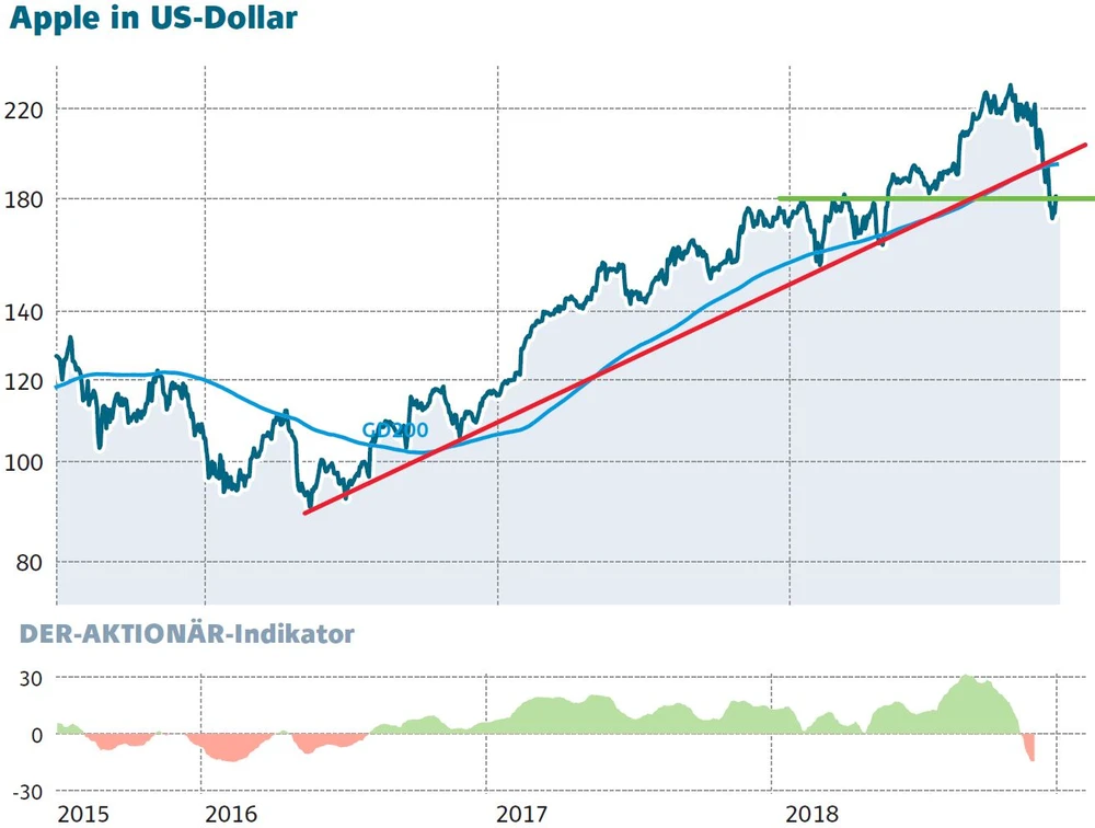 Wie DER AKTIONÄR in den vergangenen Wochen mehrmals betonte, wird die Bedeutung des iPhone für den operativen Erfolge sukzessive abnehmen. Die Aktie ist nach den jüngsten Irritationen über das iPhone wieder auf Erholungskurs. Ein nachhaltgiger Ausbruch über 180 Dollar wäre gleichbedeutend mit einem frischen Kaufsignal.