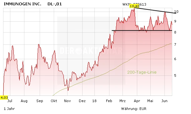 Aktuell bewegt sich Immunogen in einer Seitwärtsrange. Gelingt der Ausbruch nach oben, dürfte dies schnelle Anschlussgewinne zur Folge haben. Trotzdem eignet sich die Immunogen-Aktie nur für risikobewusste Anlegern als Depotbeimischung mit Stoppkurs bei 6,60 Euro.