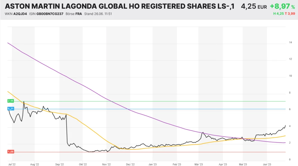 Dafür wird Aston Martin rund 232 Millionen USD an Lucid zahlen. Lucid erhält 132 Millionen Dollar in bar gestreckt über vier Jahre bis 2026 und den Rest in Aston Martin-Aktien. Die Nachrichten kamen bei beiden Aktien an der Börse gut an – Aston Martin legt mehr als neun Prozent zu, während Lucid vorbörslich mehr als acht Prozent zulegen kann.