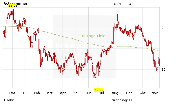 Langfristig bleibt Astrazeneca einer der aussichtsreichsten europäischen Pharma-Werte und wartet mit einer Dividendenrendite von über vier Prozent auf. Charttechnisch bleibt die Lage angespannt, nachdem der Titel unter die 200-Tage-Linie gerutscht ist. Investierte Anleger beachten den Stopp bei 45 Euro.