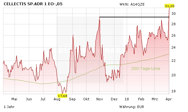 Pfizer drängt nun auch verstärkt in den zukunftsträchtigen Markt der Krebsimmuntherapie vor, in dem sich Gilead mit der Akquisition von Kite Pharma und auch Celgene mit dem Erwerb von Juno Therapeutics bereits stark positioniert haben. Zunächst beteiligt sich Pfizer mit 25 Prozent am Onkologie-Start-up Allogene (Allogen bedeutet so viel wie "anderswo entstanden"). Die neu ins Leben gerufene Firma wiederum hat einen Milliardendeal mit dem AKTIONÄR-Tipp Cellectis geschnürt. Die Folge: Ein Kurssprung von über 25 Prozent – die Geduld hat sich ausgezahlt.