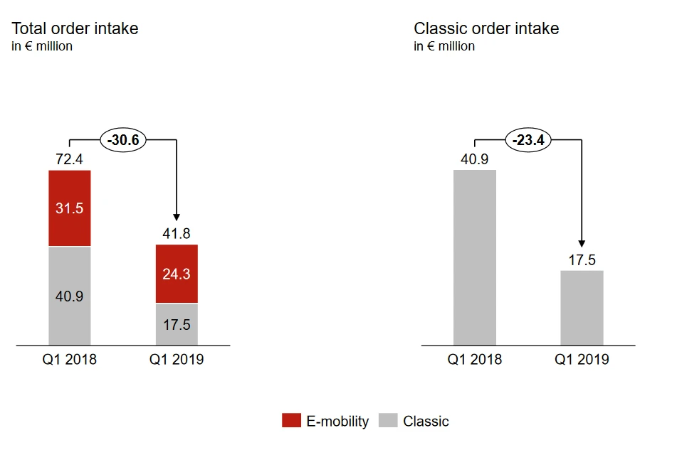 Enttäuschung auf der ganzen Linie. Wiederholte Verschiebungen von Auftragsvergaben mit signifikantem Volumen hätten zu einem enttäuschenden Auftragseingang von 85 Millionen Euro im ersten Halbjahr geführt. Ausschlaggebend für diese Entwicklung seien insbesondere der rückläufige Fahrzeugabsatz und die daraus resultierende Verunsicherung in der Automobilindustrie.
