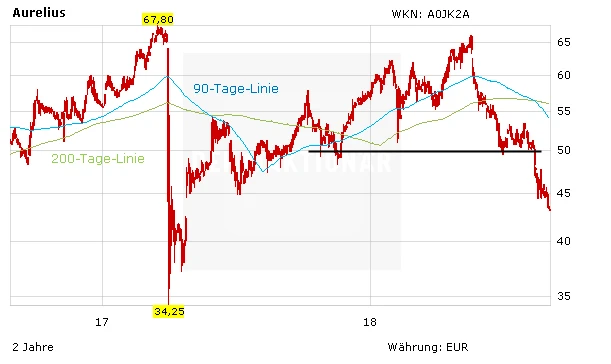 Dieser Fakt ließ die Shortseller aber nur kurzzeitig von der Aktie absehen. Seit der Rekorddividende im Mai dieses Jahres setzt sich die Talfahrt bei Aurelius immer weiter fort. Auch die wichtige 50-Euro-Marke konnte die Aktie nach einer kurzen Seitwärtsbewegung nicht mehr halten. Mittlerweile beläuft sich der Rückgang seit der Dividendenzahlung auf mehr als 30 Prozent.