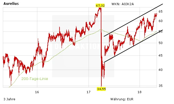 Die Papiere des Beteiligungsunternehmens bewegen sich seit der fatalen Short-Attacke im Frühjahr 2017 in einem Aufwärtstrend. Aurelius konnte zuletzt unter anderem durch die Prüfung des Net Asset Value (NAV) im Konzernabschluss weiter an Glaubwürdigkeit gewinnen. Zum ehemaligen Allzeithoch vor der Short-Attacke fehlen aber noch einige Punkte. Gefolgt von einem weiter anhaltenden positiven Newsflow und weiteren erfolgreichen Unternehmenskäufen und -verkäufen könnte sich die Aktie weiter in Richtung Allzeithoch von 67,32 Euro bewegen. Investierte Anleger geben keine Stücke aus der Hand.