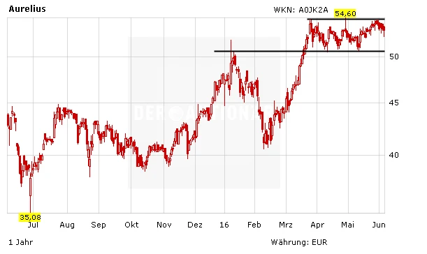 Die Aktie steht unmittelbar vor einem neuen Allzeithoch. Bei einem Ausbruch über 54,90 Euro wird ein neues Kaufsignal generiert. Dann dürfte der Wert Richtung 60 Euro durchstarten.