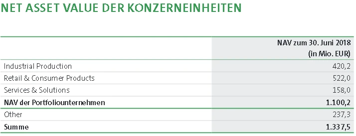 Für das kommende Halbjahr rechnet der Vorstand mit weiteren Neuerwerbungen und Add-on-Akquisitionen. Der NAV (Net Asset Value), der Wert aller Portfoliounternehmen, beträgt im ersten Halbjahr rund 1,34 Milliarden Euro, aufgeteilt in die drei Segmente Industrial Pruduction, Retail & Consumer Products und Service & Solutions.