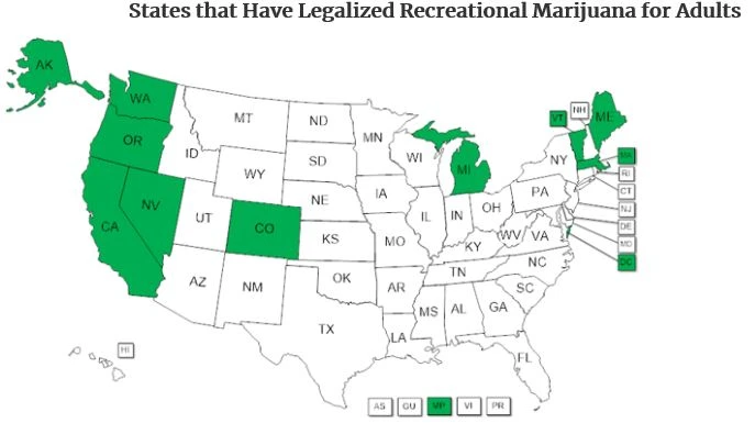 Mittlerweile ist Cannabis für den Freizeitgebrauch in mehreren US-Bundesstaaten zugelassen: Washington, Alaska, Colorado, Kalifornien, Maine, Massachusetts, Oregon, Vermont, Michigan und Nevada. Und auch in Washington, D.C. sind Marihuana-Verkäufe legal. Bald wird mit Illinois ein weiterer Staat hinzugekommen. Erwachsene sollen zukünftig bis zu 30 Gramm Cannabis besitzen dürfen. Darüber hinaus dürfen Bewohner aus Illinois bis zu fünf Gramm Hanföl besitzen. Das neue Gesetz wird dort am 1. Januar 2020 in Kraft treten.