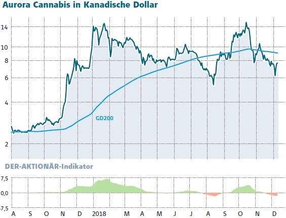 DER AKTIONÄR favorisiert im Sektor neben Aurora Cannabis weiterhin die Aktie von Canopy Growth. Auch Canopy hat zuletzt mit dem Kauf von Deutschlands Nummer eins unter den Herstellern von Vaporisatoren, Storz & Bickel, erneut positiv auf sich aufmerksam gemacht. Bei Tilray sollten Anleger ihre Position mit einem auf den Einstand (75,00 Euro) nachgezogenen Stopp absichern. Kurzfristig könnte hier der Ablauf der Sperrfrist nach dem Börsengang im Juli für Druck sorgen. Diese beläuft sich im Falle von Tilray auf 180 Tage. Der entsprechende Personenkreis kann also ab dem 15. Januar 2019 seine Aktien veräußern. Trotz der jüngsten Korrektur hat sich die Aktie von Tilray allein im Vergleich zum Kurs am ersten Handelstag fast verfünffacht.