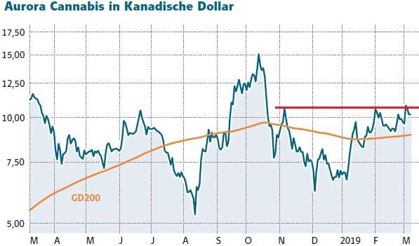 Anlegern, die sich am Cannabismarkt engagieren wollen, empfiehlt DER AKTIONÄR weiterhin die Aktie von Canopy Growth als Basisinvestment. Auch die Aktie von Aurora Growth bleibt interessant. Anleger sollten hier jedoch den nachhaltigen Ausbruch über den seit Monaten andauernden Seitwärtstrend abwarten. Es empfiehlt sich, ein Stopp-Buy-Limit bei 7,70 Euro zu platzieren.