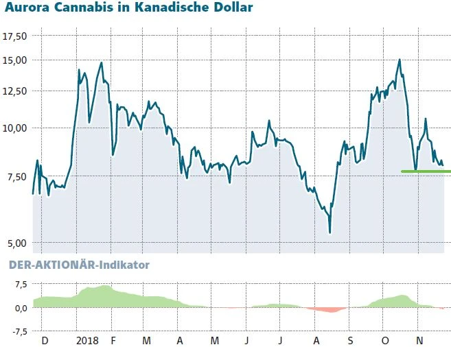 Die Aktie von Aurora war im Zuge der allgemeinen Korrektur am Cannabis-Markt und im Zuge von Gewinnmitnahmen nach der Rallye bei der Aktie zuvor erheblich unter Druck geraten, arbeitet derzeit aber daran, im Bereich von acht Kanadischen Dollar einen Boden auszubilden. Langfristig gehört das Papier ganz klar weiter zu den Favoriten des AKTIONÄR im Cannabis-Sektor. Vor einigen Wochen gab es bereits Gerüchte, dass Coca-Cola an einem Deal mit Aurora interessiert sei. Bislang wurde allerdings kein Vertragsabschluss gemeldet. Sollte es in diese Richtung News geben, könnte dies die Aktie natürlich ordentlich beflügeln.