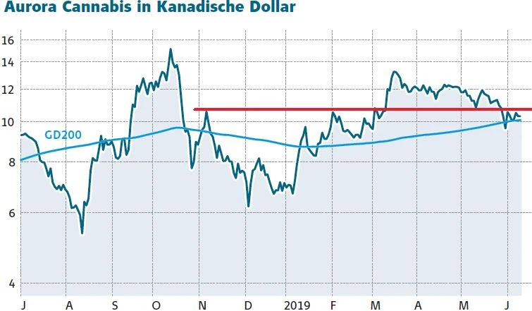 DER AKTIONÄR sieht Aurora Cannabis ebenfalls gut positioniert – und nicht nur in Deutschland, auch wenn beispielsweise in den USA die Legalisierung von Cannabis voranschreiten würde. Langfristig bleibt der Wert hochinteressant. Charttechnisch ist die Aktie aber leicht angeschlagen. Hier empfiehlt es sich, bei 11,30 Kanadischen Dollar ein Stopp-Buy-Limit zu platzieren.