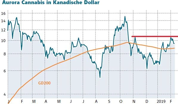 Dass es zu einem Rückgang der Marge kommen würde, war zu erwarten. Allerdings hätte man sich dennoch einen etwas moderateren Rückgang gewünscht. Insgesamt sind die jüngsten Zahlen allerdings keine große Überraschung. Wichtig ist die langfristige Positionierung. Und hier hat sich Aurora mit hohen Investitionen gut in Stellung gebracht. Dies dürfte sich in den kommenden Monaten insbesondere bei der Produktionskapazität positiv bemerkbar machen. Langfristig bleibt das Papier deswegen neben Canopy Growth einer der Branchenfavoriten des AKTIONÄR. Aus charttechnischer Sicht sollten Anleger allerdings die 200-Tage-Linie genau im Auge behalten. Diese gilt es zu verteidigen. Ein Rutsch darunter würde das Chartbild deutlich eintrüben. Ein Kaufsignal hingegen würde der nachhaltige Sprung über das Novemberhoch 2018 bringen. Kaufinteressenten warten dieses ab.