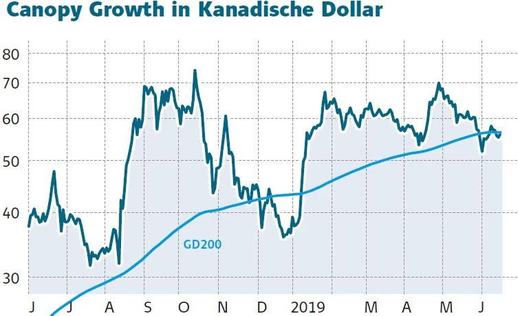 DER AKTIONÄR sieht Canopy Growth ganz klar als das Basisinvestment im Sektor. Charttechnisch ist das Papier im Zuge der jüngsten Konsolidierung allerdings kurzfristig leicht angeschlagen. Wichtig ist, dass die 200-Tage-Linie schnell zurückerobert werden kann. Für langfristige Investoren stellt das aktuelle Niveau aber gute Kaufchance dar.