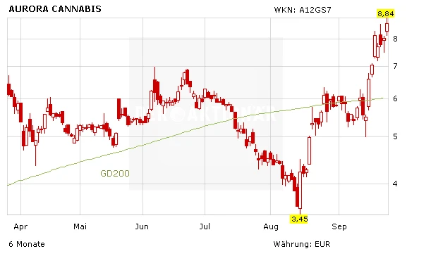 Die Aktie des AKTIONÄR-Hot-Stocks aus Ausgabe 35/2018 ist derzeit nicht zu bremsen. Aurora Cannabis gewinnt am heutigen Dienstag in Kanada schon wieder knapp acht Prozent, nachdem die Aktie bereits in den Tagen und Wochen zuvor massiv zulegen konnte. Der Grund für die heutige Rallye sind die Zahlen für das vierte Quartal bei dem Cannabis-Spezialisten. Zudem wurden die Pläne für den Gang an einen wichtigen US-Börsenplatz konkretisiert.
