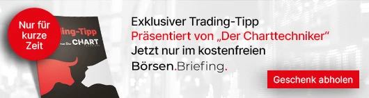 Tragen Sie sich einfach für das kostenfreie und tagesaktuelle Börsenupdate Börsen.Briefing. ein und Sie erhalten diese spannende charttechnische Analyse inklusive Gewinnchance sofort als Download bereitgestellt.
