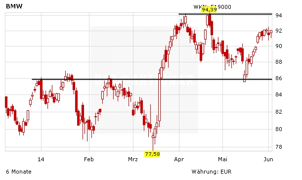 BMW schwimmt damit weiterhin auf der Erfolgswelle. Auch der Aktienkurs hat zuletzt wieder deutlich zulegen können – auf 92,02 Euro am Dienstagabend. Damit befindet sich das Papier nur noch knapp unter dem erst vor wenigen Wochen markierten Allzeithoch bei 94,39 Euro. Ein Sprung darüber würde ein erneutes Kaufsignal liefern. Der Stopp sollte zur Absicherung bei 77,50 Euro platziert werden.