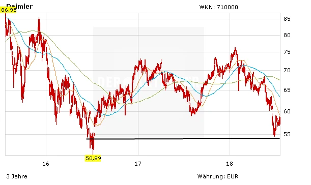 Aus Tradingaspekten sind Käufe aber vertretbar. Aus technischer Sicht hat bei Daimler die Unterstützung bei 54,68 Euro aus dem Jahr 2014 erneut gehalten. Hier können Anleger ein Abstauberlimit platzieren. Bei VW können Käufe bei 145 Euro vorgenommen werden. Die Stoppkurse werden acht Prozent unter dem Einstandskurs platziert.