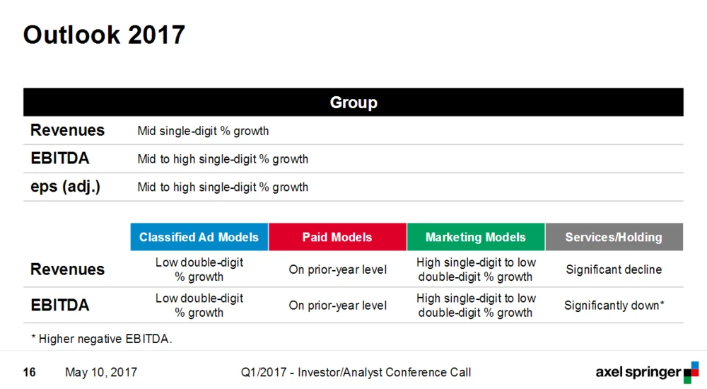 Vor allem das Rubrikengeschäft mit Anzeigenportalen im Internet hat sich wieder einmal als Wachstumstreiber erwiesen. Hier sind die Erlöse um 17,3 Prozent und das Spartenergebnis um 21,5 Prozent gewachsen.