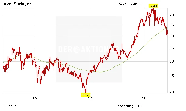 Als Konsequenz müsse der Medienkonzern stärker in Technologie und Marketing investieren oder versuchen, durch Übernahmen weiter zu wachsen. Dies berge jedoch Risiken für die Gewinnentwicklung, so Diebel. In der Folge hat er die Springer-Aktie von „Overweight“ auf „Neutral“ abgestuft und das Kursziel von 76 auf 66 Euro gesenkt.