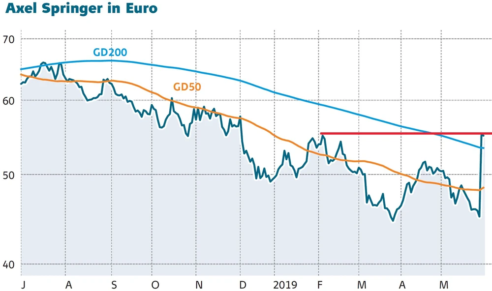 Der geplante Einstieg von KKR kommt zur rechten Zeit – die Aktie drohte weiter ins Bodenlose zu fallen. Sollte KKR tatsächlich den Verlag von der Börse nehmen, wird es wahrscheinlich nicht bei 55 Euro bleiben.