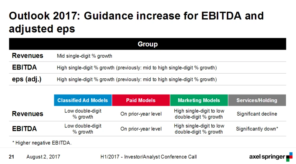 Im ersten Halbjahr ist der Spartenumsatz im Vergleich zum Vorjahreszeitraum um 15,6 Prozent auf 491 Millionen Euro gestiegen, das EBITDA um 16,6 Prozent auf rund 200 Millionen Euro. Mit einer um 0,3 Prozentpunkte verbesserten EBITDA-Rendite von 40,7 Prozent waren die Rubrikenangebote zwischen Januar und Juni erneut das profitabelste Segment. Konzernweit lag die EBITDA-Rendite zuletzt bei 18,7 Prozent.