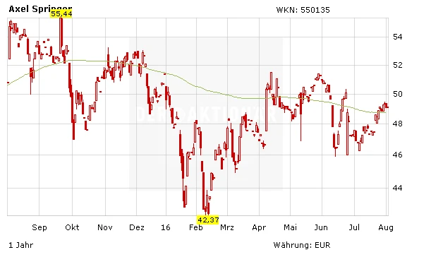 Auch für Sonia Rabussier von der Commerzbank ist die Springer-Aktie vor den Zahlen eine Halte-Position mit einem fairen Wert von 50 Euro. Ergebnisseitig halte sie eine positive Überraschung für möglich, Umsatzseitig dürfte der Medienkonzern dagegen wie am Markt erwartet abschneiden.