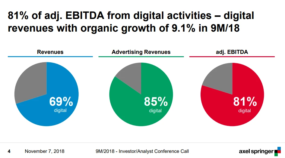 Schon heute erwirtschaftet der Medienkonzern 69 Prozent seiner Umsätze, 85 Prozent der Werbeerlöse und 81 Prozent des operativen Gewinns digital – Tendenz steigend.