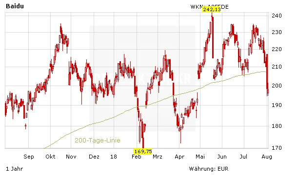 Der Umsatz legte im zweiten Quartal um 32 Prozent auf 3,93 Milliarden Dollar zu. Baidu übertraf damit sowohl die eigene Prognose als auch die Erwartungen der Analysten. Die Werbe-Umsätze bleiben im abgeschlossenen Quartal ebenfalls stark, obwohl einige Analysten eine deutliche Abkühlung des Gesamtmarktes erwartet wurde. Das Kernsegment Online-Marketing wuchs um 25 Prozent auf 3,18 Milliarden Dollar an.