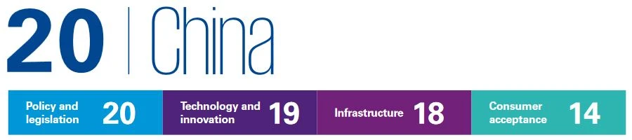 Chinesische Konzerne – allen voran Baidu – investieren viel in die Selbstfahrer-Technologie. Der „Autonomous Vehicle Readiness Index 2019“ von KPGM, der neben technologischen Fortschritten auch die Infrastruktur, Gesetzgebung und Akzeptanz bewertet, setzt China dennoch nur auf den 20. Platz. Der erste Platz geht an die Niederlande, der vierte Platz an die USA, Deutschland rangiert auf dem achten Platz.