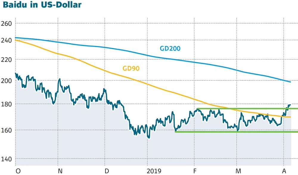 Der Chart zeigt, die Anleger schöpfen nach den positiven Wirtschaftsdaten und den positiven News beim Sebstfahrer-Engagement wieder Vertrauen. Die Baidu-Aktie kann aus der Seitwärtsrange ausbrechen und generiert ein deutliches Kaufsignal. DER AKTIONÄR meint: Gewinne laufen lassen.