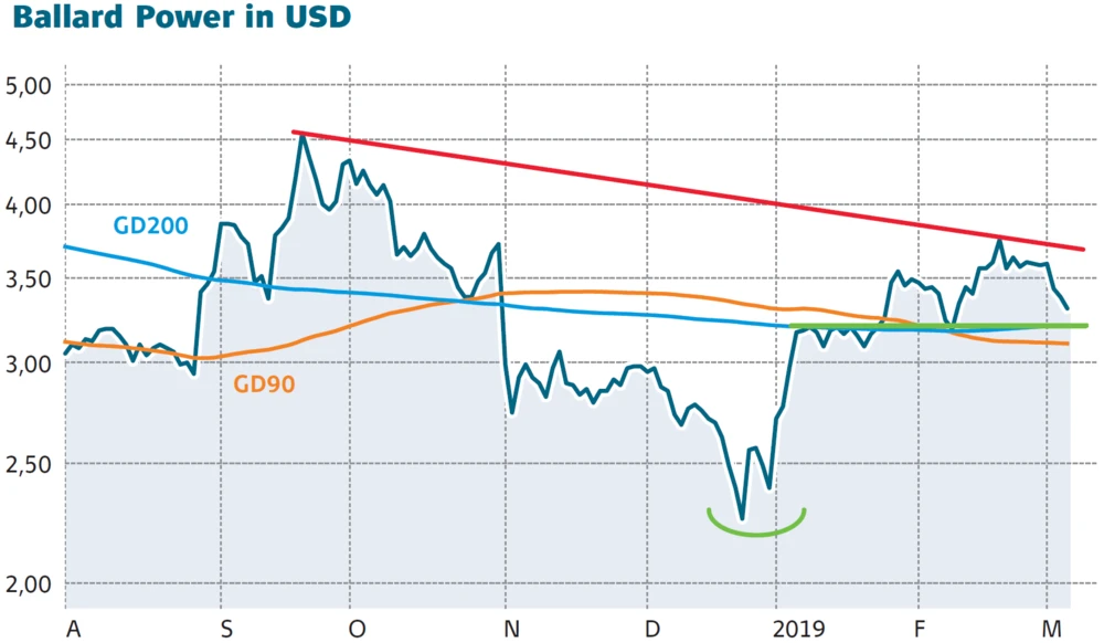 Im vierten Quartal erzielte Ballard Power einen Verlust von 4 US-Cent je Aktie (erwartet wurde ein Fehlbetrag von 2 US-Cent pro Papier) und einen Umsatz von 28,5 Millionen Dollar (Schätzung gut 23 Millionen Dollar). Der Cash-Bestand stieg am Jahresende deutlich von 131,9 Millionen Dollar auf 192,2 Millionen Dollar – dies ist vor allem den Investments der chinesischen Investoren Weichai Power und Broad Ocean geschuldet.