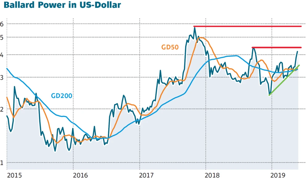 Zuletzt sorgte Ballard Power für positiven Newsflow. An dieser Stelle sei der Auftrag von Wrightbus oder die Zusammenarbeit mit ABB und anderen Unternehmen an einem Projekt in Frankreich zu nennen.