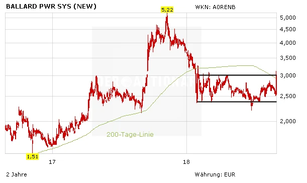 In den letzten Monaten mussten Ballard-Power-Aktionäre starke Nerven zeigen. Mehrere charttechnische Ausbruchsversuche schlugen fehl. Doch mit dem Weichai-Power-Deal sollte nun die Wende gelingen. Im vorbörslichen Handel legt die Aktie rund 20 Prozent zu. Der Hot-Stock der Woche aus der AKTIONÄR-Ausgabe 10/2018 nimmt nun endlich Fahrt auf. Spekulative Anleger legen sich ein paar Stücke ins Depot. Langfristig zählt Ballard Power unverändert zu den attraktivsten Brennstoffzellen-Werten auf dem Kurszettel.