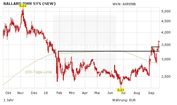 Gleichzeitig soll dank einer höheren Lebensdauer, Toleranz und Leistungsdichte das Produkt für Fahrzeuge im Schwerlastverkehr attraktiver gemacht werden. Darüber hinaus will Ballard Power mit einer vereinfachten Systemintegration auftrumpfen. Die Börse zeigt sich indes von den Details der angekündigten FCgen®-LCS begeistert: Im gestrigen Handel gewann die Aktie 7,4 Prozent auf 4,19 Dollar.