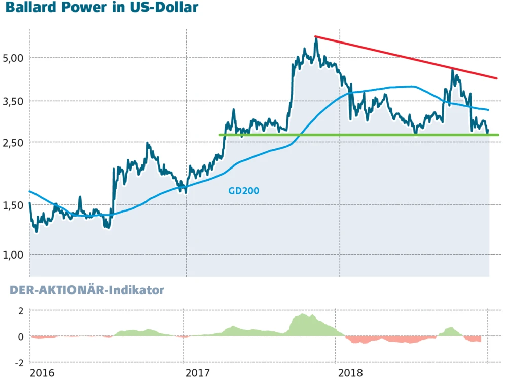 Dass Ballard Power auch bei Brennstoffzellen-Zügen mitmischen will, stimmt positiv. Dennoch belastet weiter das schwächelnde China-Geschäft und die daraus resultierenden miesen Zahlen zum dritten Quartal. Anleger sollten den Wert nicht abschreiben, jedoch vor einem Einstieg klare charttechnische Impulse abwarten.