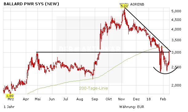 Ballard Power ist und bleibt eine spekulative Langfrist-Wette auf den Durchbruch der Brennstoffzellen-Technologie. Die Entwicklung in Shanghai stimmt positiv. Gelingt es Ballard Power, weitere Aufträge in China an Land zu ziehen, dürfte die Aktie weiter zulegen können.