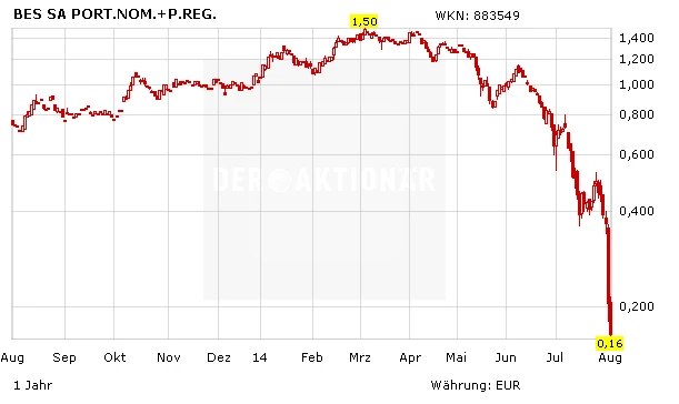 Die Banco Espirito Santo (BES) hat die Marktteilnehmer mit ihrem dramatisch hohen Quartalsverlust für das zweite Quartal geschockt. Mit einem Fehlbetrag von satten 3,6 Milliarden Euro wurde sogar das eigentlich ordentliche Polster an überschüssigem Kapital von mehr als zwei Milliarden Euro komplett pulverisiert. Der neue Konzernchef Vitor Bento hat bereits angekündigt, dass man nun bald wieder eine Kapitalerhöhung durchführen wird. Analysten gehen davon aus, dass die BES rund 3,5 Milliarden Euro einsammeln will. Bento versicherte zudem, dass „gegenwärtige und potenzielle Anleger“ bereits Interesse bekundet hätten.