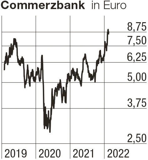 Die Commerzbank-Aktien erwischten einen Top-Jahresstart und stehen mit 30 Prozent im Plus. Weder Millionenrückstellungen für die polnische Tochter mBank noch der Ukraine-Konflikt sorgten für größere Rücksetzer. Das Papier zeigt Relative Stärke und profitiert deutlich von der Zinswende, die global anläuft. Nach Redaktionsschluss am Donnerstag werden Zahlen erwartet. Im Schnitt rechnen Experten mit rund 100 Millionen Gewinn für 2021. Mutige können noch immer das Momentum nutzen und zugreifen.